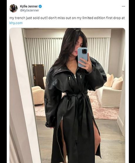 This glamorous fashionista didn’t stop there. She further ignited the buzz by sharing a stunning photo of herself donning the coveted trench coat, expertly paired with high-heeled shoes, capturing the essence of her new collection. With a price point of $198, this trench coat from Khy is as affordable as it is fashionable, reflecting Kylie’s commitment to offering accessible style.