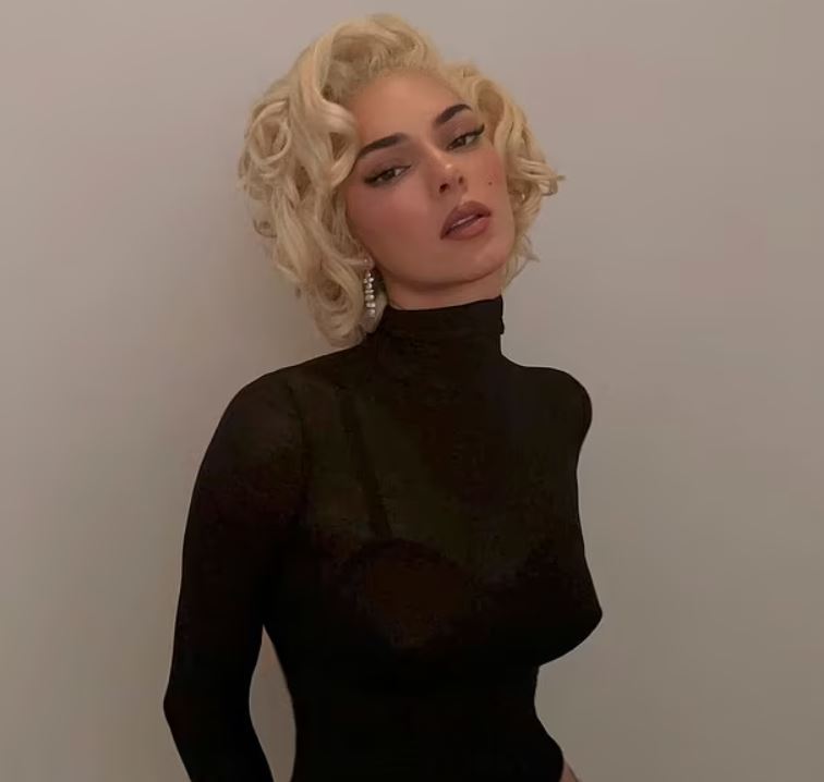 In another jaw-dropping transformation, Kendall channeled Marilyn Monroe, donning a platinum blonde wig and a long-sleeved black turtleneck top. The caption, “happy birthday mister president,” left fans intrigued and eager for more.