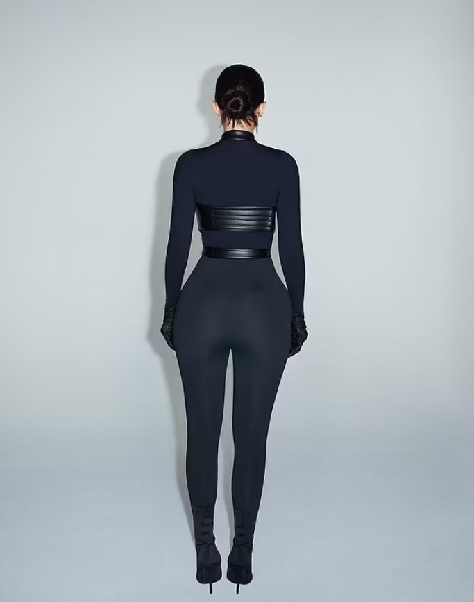 In a recent promotional post that had social media buzzing, Kylie graced the official Khy Instagram account, showcasing a mesmerizing all-black ensemble. The 520,000 followers lucky enough to witness the fashion spectacle were treated to Kylie’s impeccable style, as she modeled skintight leggings, a long-sleeved top, faux leather gloves, and a show-stopping faux leather halter top with an open back. The mock neck garment cinched at her waist, accentuating her enviable hourglass figure. The caption accompanying the post excitedly announced the availability of the “”faux leather open back top and base layers”” on the official Khy website, khy.com.
