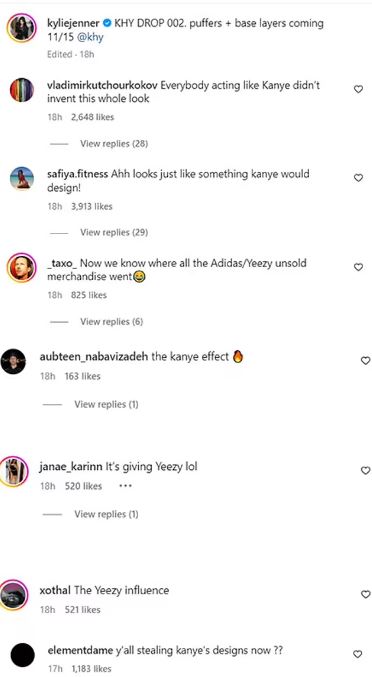 The evidence of this controversy unfolded in the comments section of her latest Instagram post. Several users accused Kylie of “stealing Kanye’s designs.” One passionate fan, Instagram user @vladimirkutchourkokov, wrote: “Everybody acting like Kanye didn’t invent this whole look.” Another user, @taxo, chimed in with a humorous jab, stating, “Now we know where all the Adidas/Yeezy unsold merchandise went.”