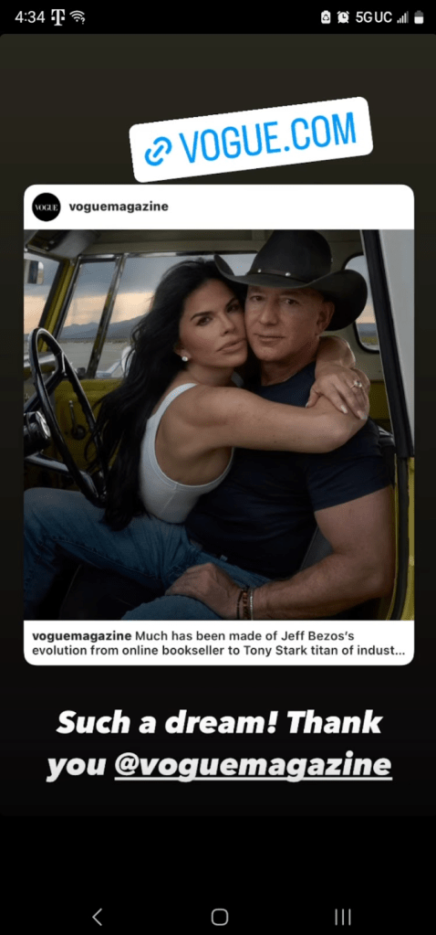 The screenshots are from Ms. Lauren Sanchez’s instagram stories. She shared the link.