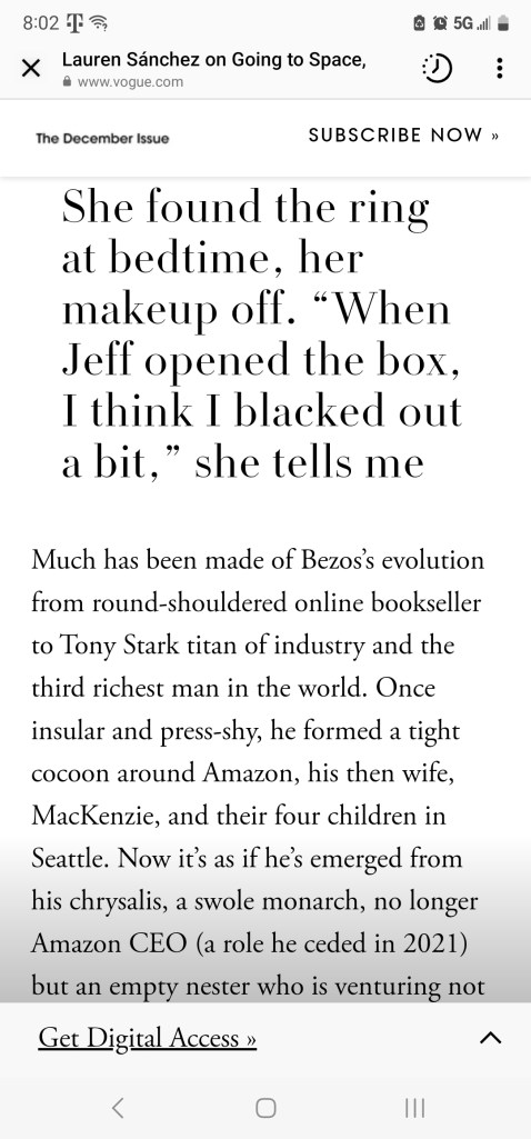 They look happy together and are celebrating their love. As to tone deaf, Jeff as he transitioned out of Amazon to focus on space endeavors, he embraced his best life. He is living his best life. What I love about Jeff is that he owned his desire. He fell in love with Lauren and protected their love from seedy tabloids. Lauren brings out the glamour of Jeff and air brushed? Jeff looks well built.