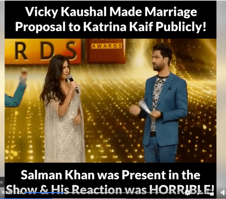 He says “Ek choti si request hai apse. Katrina, main apka bahut bada fan hoon, to aap ek ache se Vicky Kaushal to doondh ke shaadi kyon nahi kar leti”. She says’ Himmat nahin hai, looking at Salman Khan.