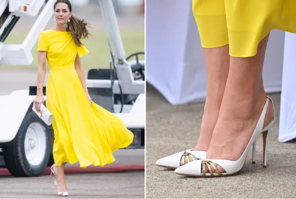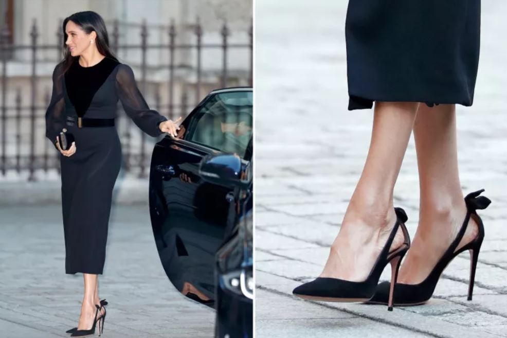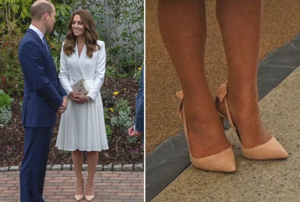 Kate Middleton, known for her impeccable fashion sense, didn’t take long to embrace the Aquazzura trend. It’s rumored that she now owns six different styles, each contributing to the modernization of her royal looks. While Kate doesn’t have an exact replica of Meghan’s ‘Matilde’ pumps, she opts for various traditional pump styles, including the ‘bow tie’ pumps that add a modern twist. These pumps feature small cut-outs at the sides, topped off with a bow detail on the back of the ankle, presenting a chic yet subtly daring look.