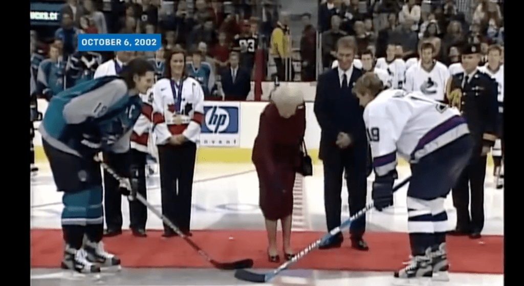 This special event was part of the Queen’s Golden Jubilee celebrations during her tour of Canada in 2002. It was a significant moment in the history of the Vancouver Canucks as it marked a royal visit and participation in a ceremonial tradition often associated with hockey games in Canada.