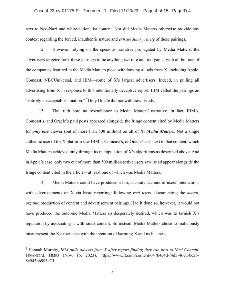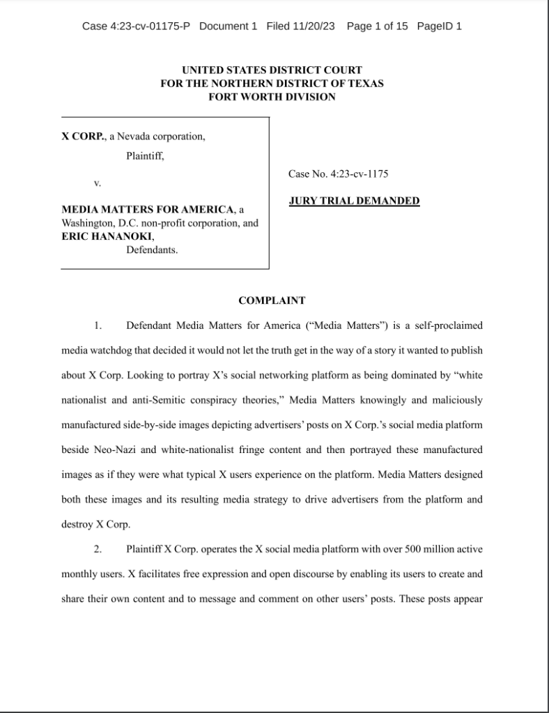 One thought on “Musk Sues Media Matters”