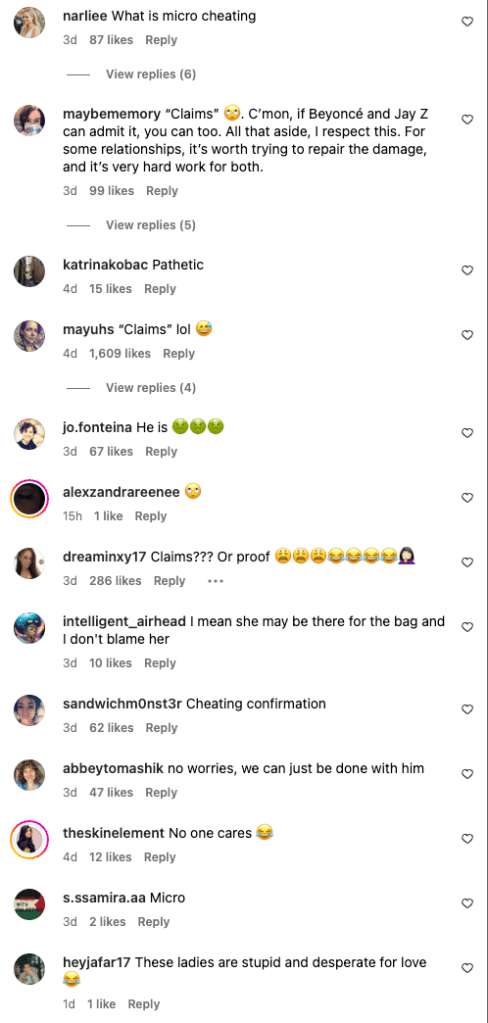 - “Claims” 🙄. C’mon, if Beyoncé and Jay Z can admit it, you can too. All that aside, I respect this. For some relationships, it’s worth trying to repair the damage, and it’s very hard work for both.
