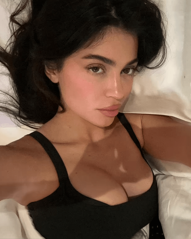 As the makeup artist worked their magic, applying lip gloss and accentuating Kylie’s features, the starlet gave a glimpse into the glamour behind the scenes. Dressed in a black bra, she posed on a bed draped in white sheets, exuding confidence and allure. Notably, she flaunted a plunging gold gown, complemented by bronze-colored makeup, solidifying her status as a fashion icon.