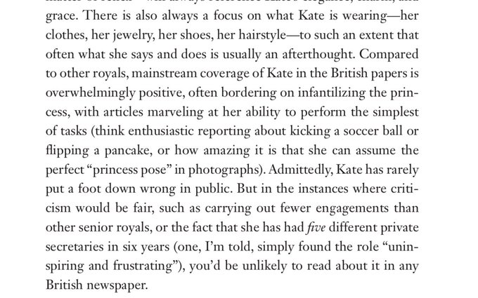 - Scobie criticizes the portrayal of Kate Middleton, implying that her achievements are disproportionately praised compared to other royals.