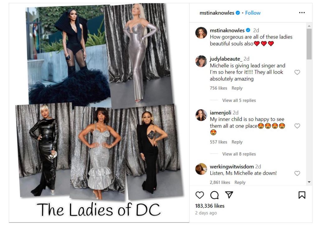 LeToya Luckett joined the chorus, sharing her solo shots and pouring her heart out about the film, “@beyonce put her heart into this movie. I danced, sang, cried & laughed in that theater the same way I did at the show. This woman is AMAZING.” Beyoncé’s mom, Tina Knowles, couldn’t help but comment on each friend’s post, showering them with love.