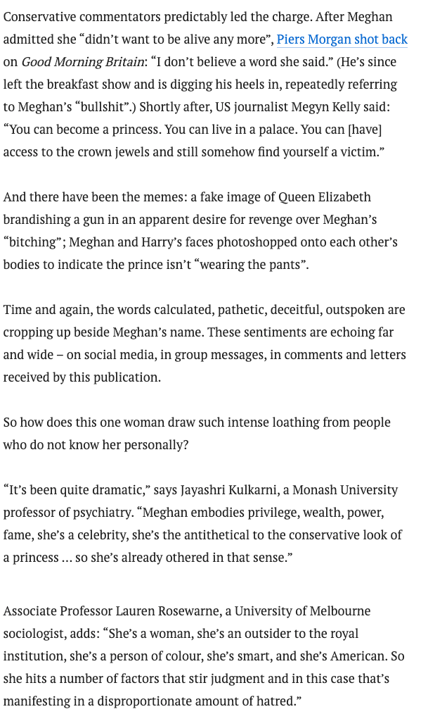 - Racism and Sexism: The hatred towards Meghan is deeply rooted in racism and sexism, even if not consciously acknowledged by individuals. Claims of her being manipulative or a gold digger reflect age-old stereotypes of women, contributing to the disproportionate disdain.