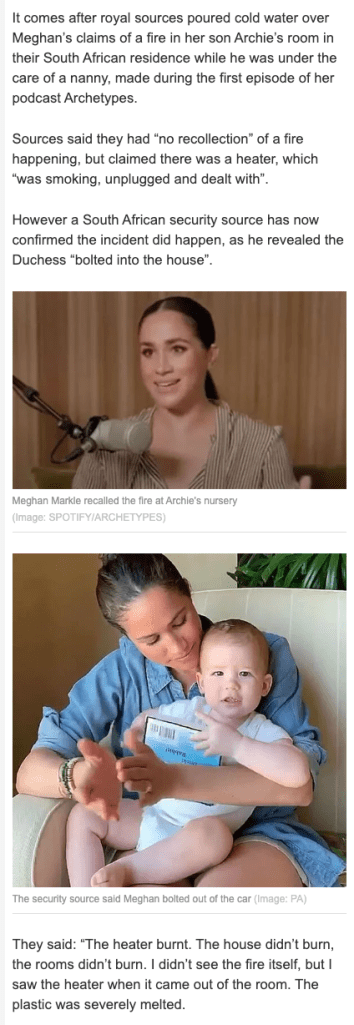 - Concern for Child’s Safety: Meghan expressed worry about a fire in her son’s room during a royal tour, which led to tabloid criticisms, although a South African security confirmed the incident.