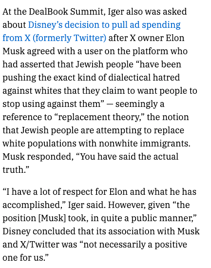 Bob Iger appeared earlier in the day at the conference and noted (as per Variety), that he was disappointed with his association with X.