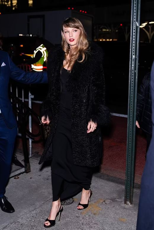 Taylor Swift took center stage at the ‘Poor Things’ premiere, turning a regular night into an unforgettable spectacle. The red carpet was her kingdom, and Swift was the undisputed queen, donning a jaw-dropping black fur coat, scarlet pedicure, and her signature red lip that left fans in awe.