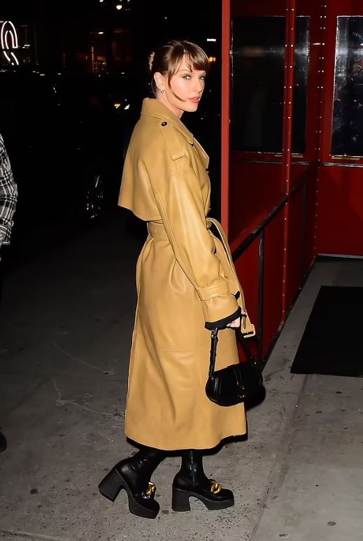 The night commenced at Parcelle Restaurant in New York, where Taylor, donning a beige leather trench coat paired with a chic black ensemble and chunky heeled boots, exuded elegance. Accompanied by actor Miles Teller and his wife Keleigh, who starred in Taylor’s music video “I Bet You Think About Me,” the trio, later joined by Selena Gomez, set the tone for a memorable evening.