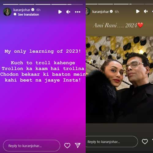 In the subsequent Instagram story, Karan shared his profound insight gained in the past year, encapsulated in a witty remark, “My only learning of 2023! Kuch to troll kahenge Trollon ka kaam hai trollna Chodon bekaar ki baaton mein kahi beet na jaaye Insta!” With this, he not only acknowledged the prevalence of trolls but also adopted a nonchalant attitude towards their opinions.
