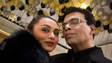 In a captivating selfie, Karan Johar and Rani Mukerji exuded sheer charisma as they embraced the arrival of 2024. Dressed in an all-black ensemble, KJo showcased his signature pout, while Rani stunned in a black outfit, accentuated by impeccable eye makeup and a bold red lipstick. The backdrop was nothing short of enchanting, adorned with a symphony of yellow, black, and silver balloons that set the perfect celebratory tone.