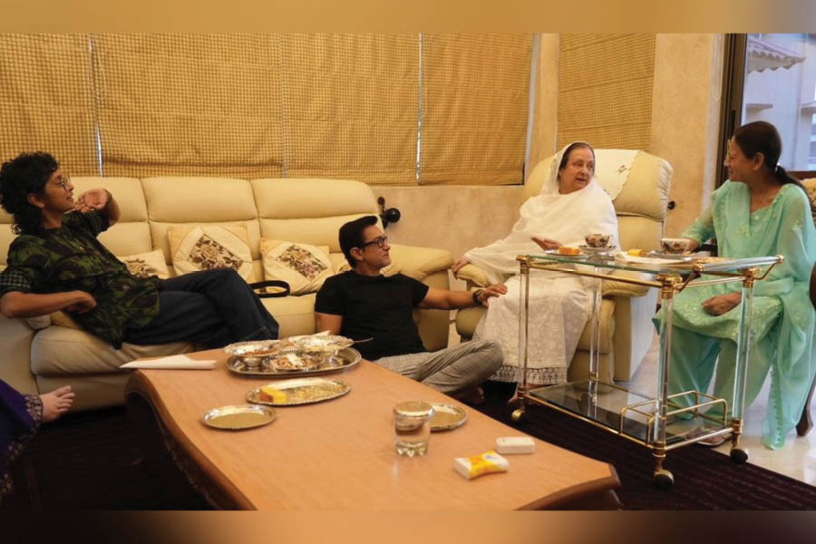 Seated elegantly on a sofa, Saira Banu was joined by Aamir Khan, who chose the floor beside her for the evening’s festivities. Kiran Rao, clad in a printed top and jeans, shared in the camaraderie from the comfort of a nearby couch. The presence of Aamir’s mother and sister, Nikhat Khan, added a familial touch to the celebration.