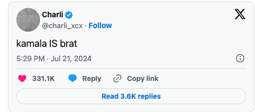 The shift from Vice President to the presumed Democratic nominee for the presidency is not the only transformation Kamala Harris is undergoing. Following President Joe Biden’s endorsement, Harris’s campaign has strategically embraced the viral “brat summer” meme, leveraging it to connect with younger voters and contemporary pop culture. On X, the campaign’s official rapid response page has been rebranded with a neon lime green profile header, mirroring the aesthetic of Charli XCX’s latest album, Brat. This creative nod not only modernizes Harris’s public image but also aligns her with current cultural trends.