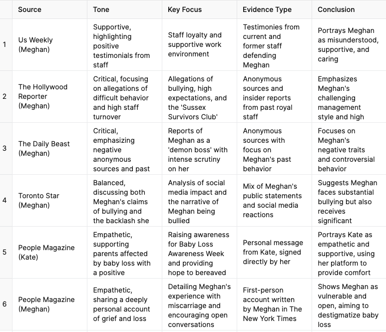 - Among the few media outlets that defend Meghan, Us Weekly features testimonies from current and former staff who describe Meghan as supportive and compassionate. These accounts contradict the harsh portrayal seen in other publications, suggesting that Meghan’s leadership style is misunderstood and that her efforts to connect with staff are genuine.