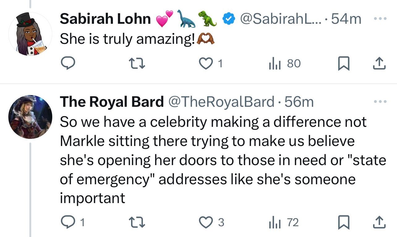 - @BarbJG suggested Meghan is targeted by an organized campaign: “I imagine it’s the British hate machine. They have automatic trolls for H&M.”