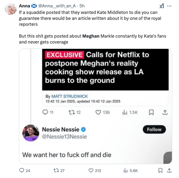 Several users suggested that critics are secretly fans, deeply invested in her every move.- @wardy2104 mockingly observed:”They are as thick as mince… Meghan is their ‘boss.’ She lives in all their heads and is paying their wages.”