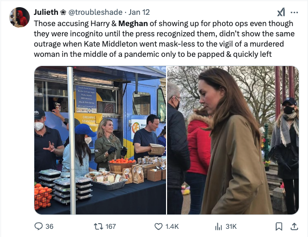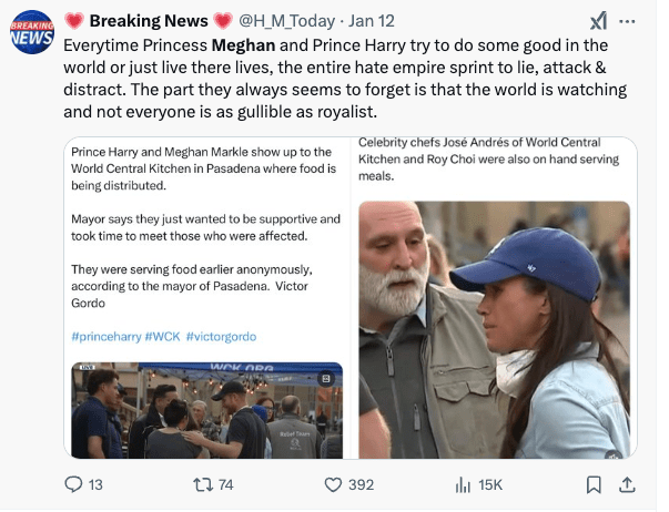Supporters also praised Meghan for volunteering during the wildfires and taking action, unlike her critics, who are often seen as all talk.- @WRises18854 put it succinctly:”Hating her is the only exciting thing in their miserable lives.”