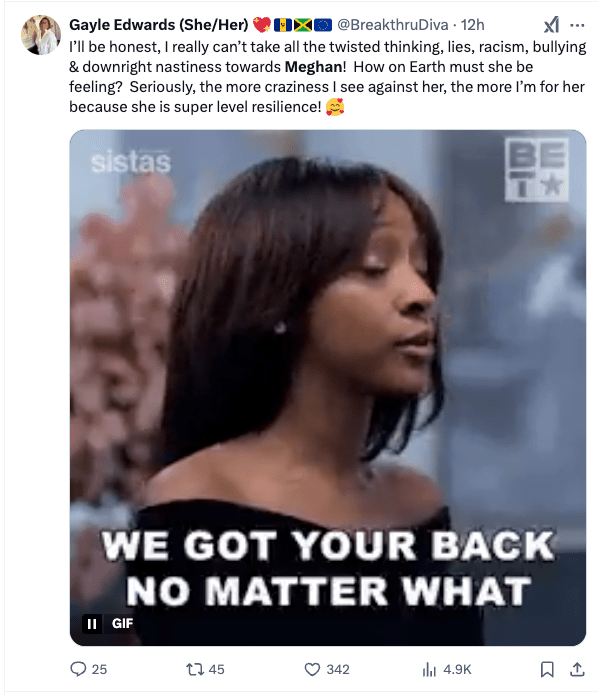 This kind of witty response epitomizes the tone of many Meghan defenders, who find humor in pointing out the contradictions of her detractors.