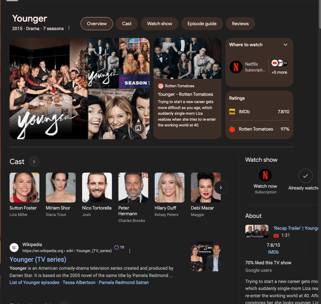 Sutton is in Younger, a great watch on Netflix.