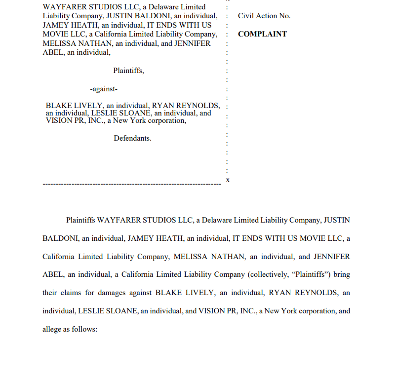Baldoni’s lawsuit establishes that he is filing against Blake Lively and Ryan Reynolds for orchestrating a campaign that allegedly: