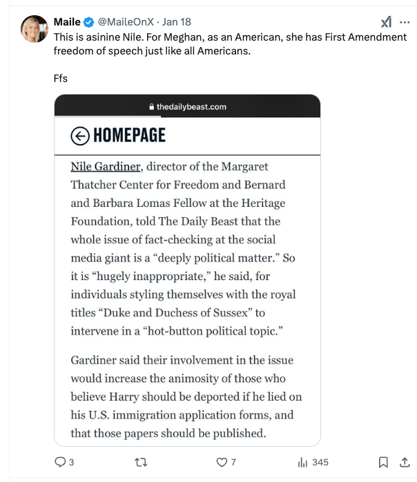 At the same time, Harry and Meghan have waded into another controversy, this time criticizing Meta for shutting down its fact-checking program.