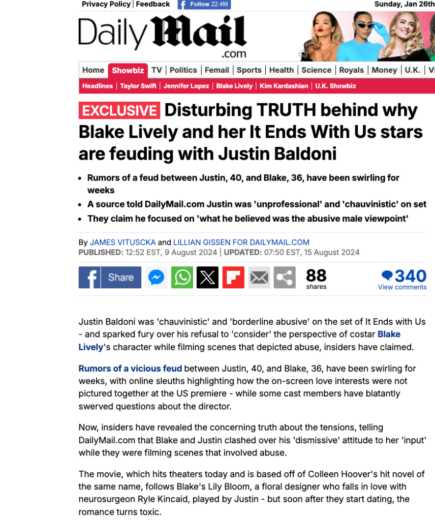 🔹 He clashed with Blake Lively & Colleen Hoover.