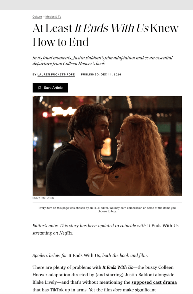 One thought on “Justin Baldoni’s Controversial Adaptation of It Ends With Us”