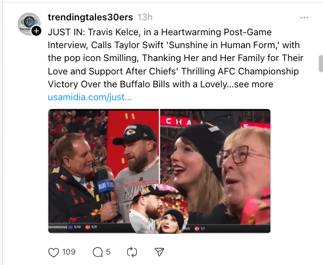 - Viral Memes & Tweets: Swift’s influence on the Chiefs’ fan base has led to increased engagement in NFL social media content.