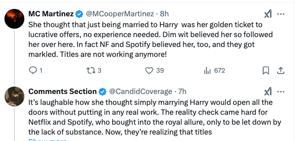 - Netflix Deal: There is significant criticism of their deal with Netflix, with some suggesting that the platform expected more substantial content than what has been delivered. The commenters argue that the couple’s projects have lacked depth and substance, leading to disappointment.