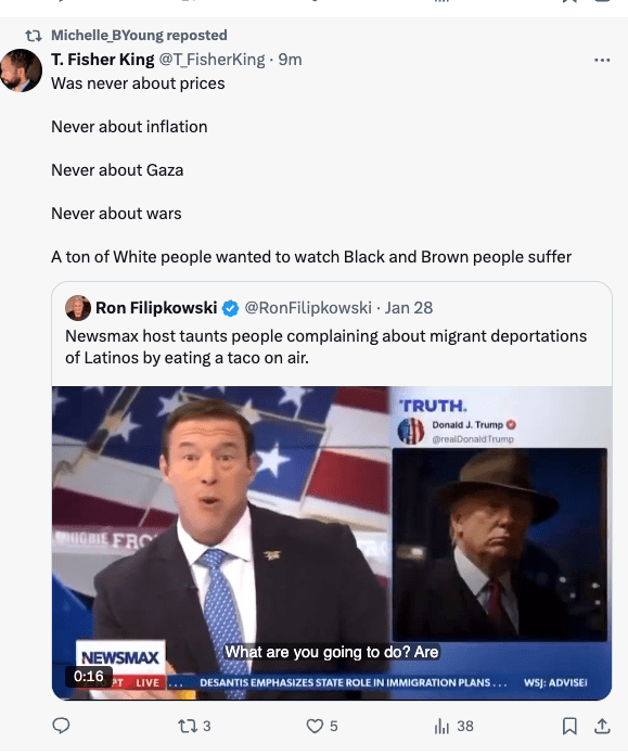 “Right now with deportations, we are getting rid of criminals… this process is saving American lives.”