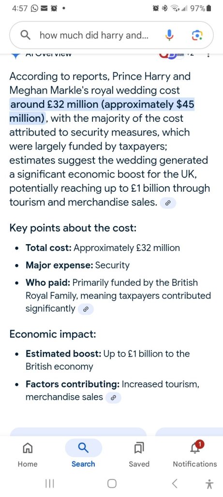 - Meghan and Harry’s wedding generated massive profits for the UK: Multiple users push back on the idea that Meghan’s wedding was a financial drain on British taxpayers. Instead, they argue that the wedding generated over £1 billion in tourism, media rights, and economic stimulation, ultimately benefiting the UK and the Royal Family more than it benefited Meghan personally.