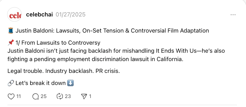 January 2, 2025 – Baldoni’s Lawyer Threatens More Lawsuits