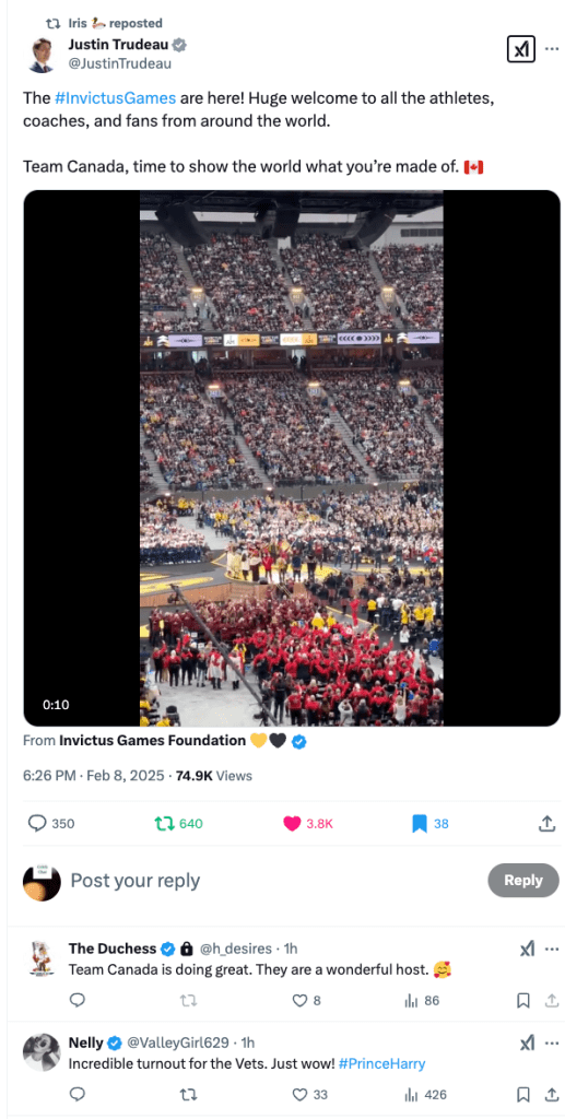 The Invictus Games, founded by Prince Harry, celebrate resilience, strength, and the unbreakable spirit of those who have overcome immense challenges. By showing up and recognizing these incredible athletes, Trudeau demonstrates what true leadership looks like—championing the courage of those who gave everything for their country.
