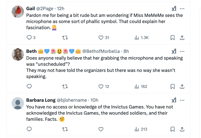 Selective outrage is another pattern that emerges in the thread. Some users point out that critics of Meghan ignore controversies surrounding Prince Andrew while focusing intensely on Meghan’s past. Others highlight that Meghan’s introduction of Harry as “the father of her children” was mocked, even though similar introductions by other royals have not received the same backlash. Even the Invictus Games, an event widely recognized for supporting veterans, is ridiculed by some users, illustrating that even non-controversial aspects of the couple’s work are met with hostility.