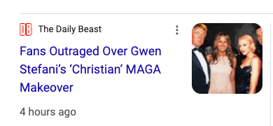 While many expressed shock at Stefani’s apparent conservative turn, others pointed out that the signs have been present throughout her career. As one social media commenter noted, “Why are people surprised that Gwen Stefani is a right wing lunatic? Miss thing made a career out of cosplaying as other ethnicities and married a country music guy.”