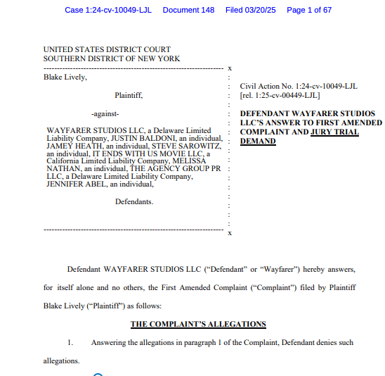 Wayfarer Studios’ response to Blake Lively’s First Amended Complaint involves a detailed point-by-point rebuttal, featuring outright denials, claims of insufficient knowledge, and occasional admissions. This analysis will break down the strongest and weakest points in Wayfarer Studios’ defense to determine how the case is currently positioned.