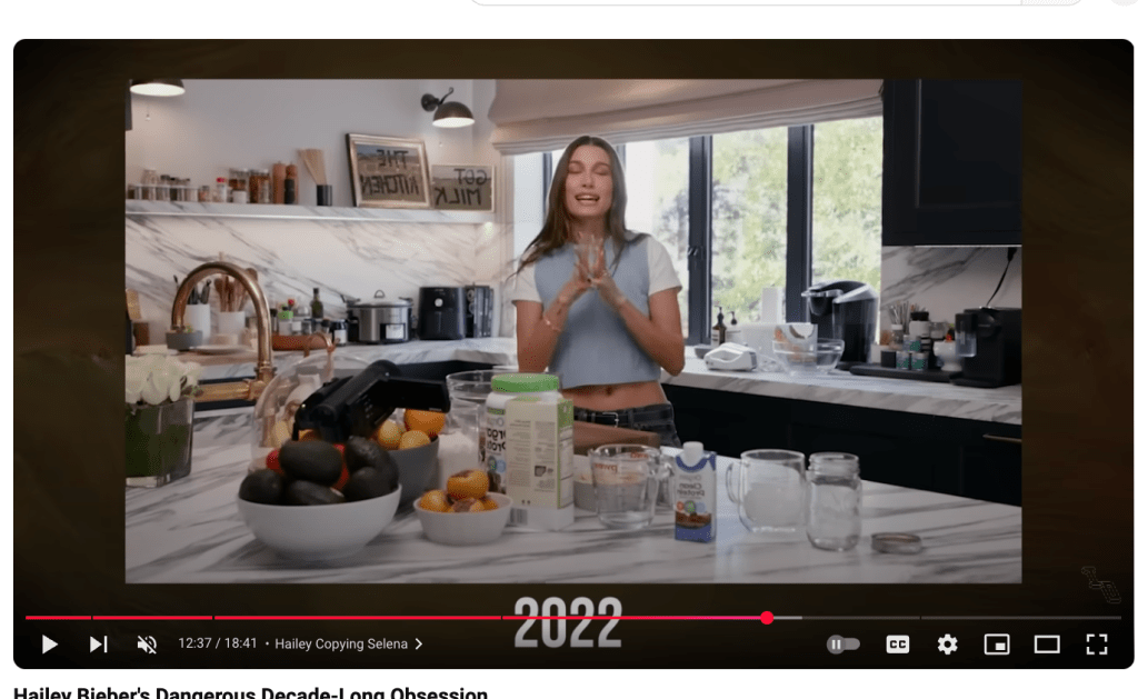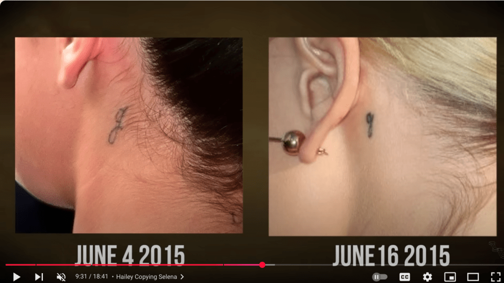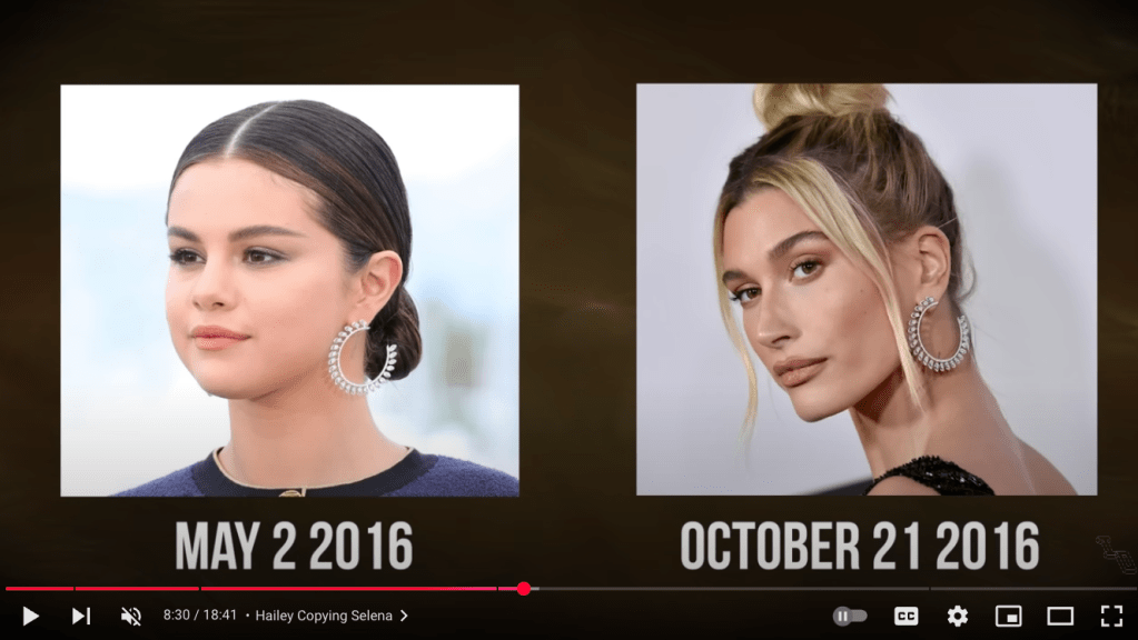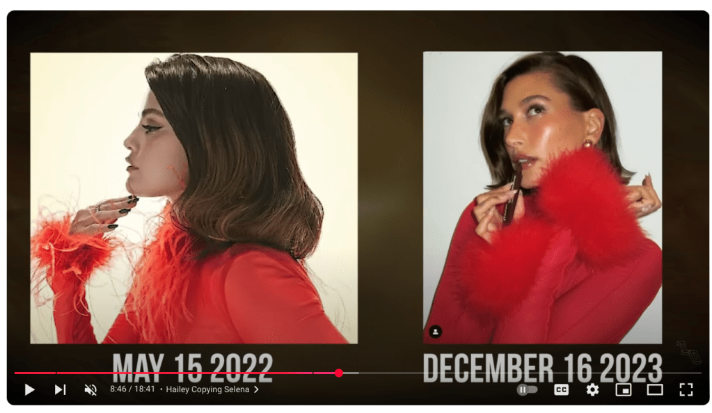 The transcript also delves into Hailey’s alleged pattern of copying Selena Gomez, from clothing and tattoos to social media posts and cooking shows. Several incidents are highlighted where Hailey seemingly emulated Selena’s outfits, quotes, and show format, raising questions about her originality and obsession with Selena.