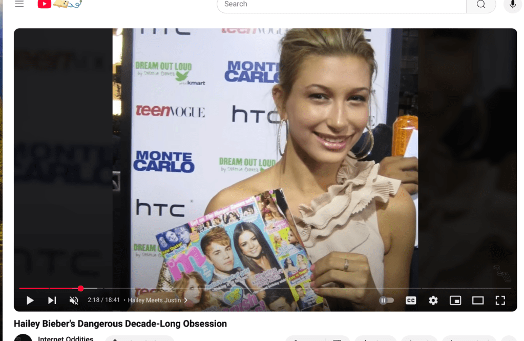 This video discusses the history and dynamics between Justin Bieber, Hailey Baldwin (now Hailey Bieber), and Selena Gomez. It chronicles Hailey’s persistent efforts to be around Justin Bieber since she met him backstage at the Today Show in 2009, thanks to her father Stephen Baldwin. Hailey continued to attend Bieber’s events, appearing at concerts and premieres and strategically using her social connections to stay close to him.
