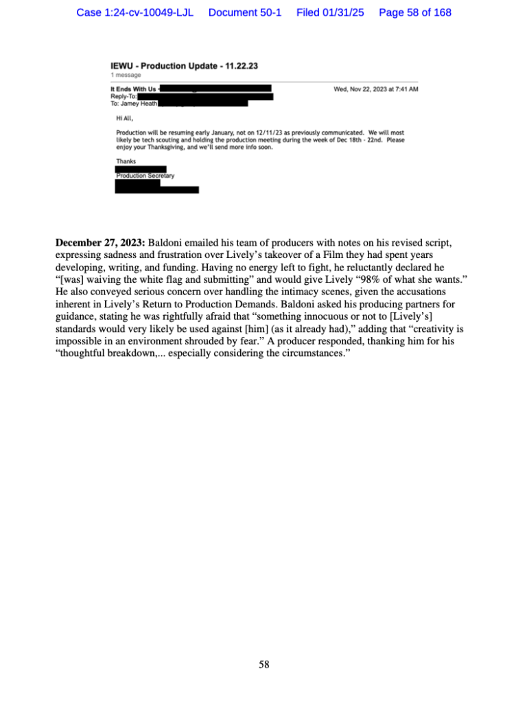 The timeline proves Blake was fully involved in shaping the film. She wrote new dialogue. You asked her for input. You scheduled edits around her. You called her the “dream team.” Then the moment she pulled back and drew a line, you flipped the script. That’s not about artistry — that’s about being told to stay in your lane.