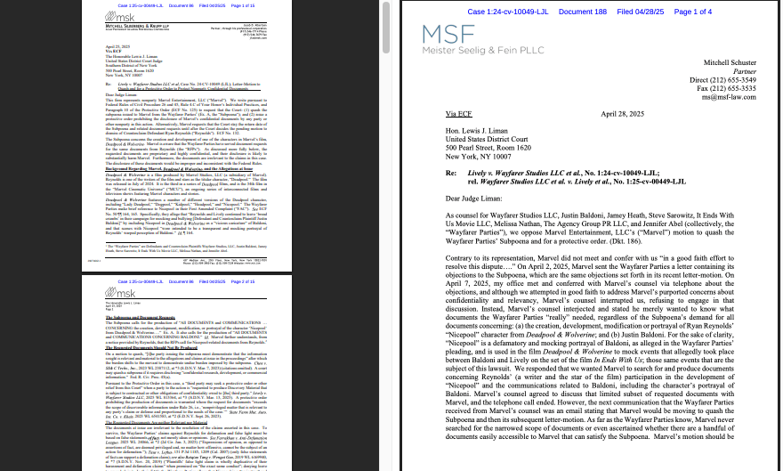 Wayfarer Studios has fired back, claiming Marvel didn’t genuinely attempt to resolve the dispute before filing their motion. They offered to narrow the subpoena to just documents about: