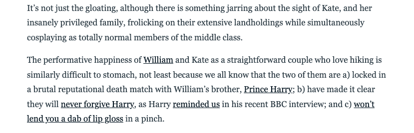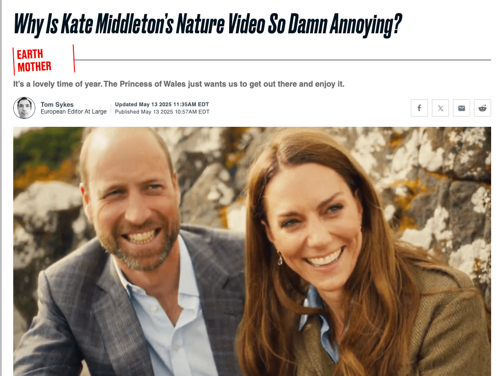 The real issue isn’t that Kate enjoys nature or finds it healing but it’s that the royal communications machine continues to package privilege as relatability. When you live behind palace walls, maybe don’t lecture the rest of us about getting outside. Or at least acknowledge that your outdoor experience might be slightly different from someone whose nearest green space is a traffic island.