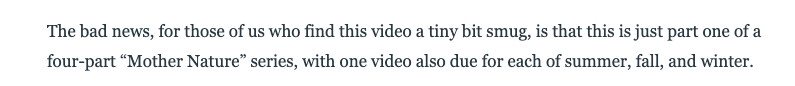 Instead of addressing any of these systemic issues, we get a beautifully shot video that essentially boils down to “have you tried just…going outside?” It’s the wellness equivalent of “let them eat cake.”