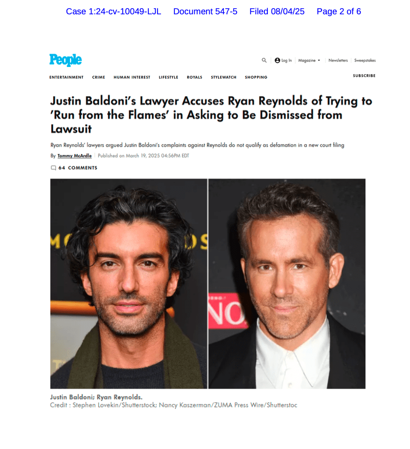 Credibility argument: This positions Baldoni as a victim of cancel culture and his team as principled — important for jury perception and summary judgment motions.