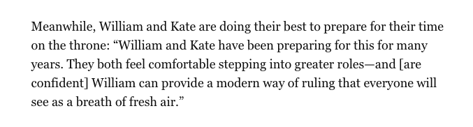 Seven years later, in 2024, the press had largely moved on from Meghan as the embodiment of modernity. Instead, attention shifted toward Prince William and Catherine, Princess of Wales, as the next great hope for a revitalized crown. An InStyle report drawing on Us Weekly sources described Camilla, now Queen, as hesitant to pass on her duties to Kate, and noted an “always tense” relationship between the two women. The piece suggested Charles and William were “close” but also rivals in their royal work, echoing the tension Charles once felt with Diana over public attention. William and Kate, however, were presented as prepared and confident, ready to deliver “a modern way of ruling that everyone will see as a breath of fresh air.” The framing mirrored Meghan’s in 2017 freshness equated to readiness to lead while subtly implying that the current reign was out of step with public anticipation.